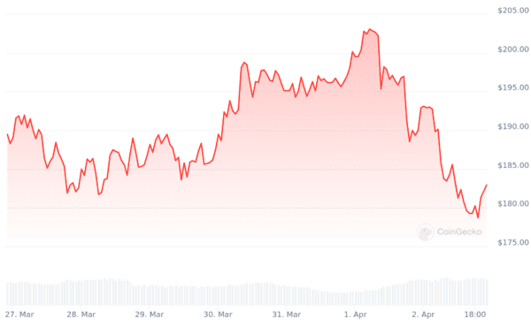 Since October, Solana’s price has risen by 500%, showing a positive trend. On the last day, this cryptocurrency’s price declined by 8%, settling at $189 and giving hope to other meme coins to fly in the next bull run.