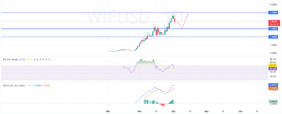 WIF is the most reliable coin as it shows a bullish trend by achieving a mark of $4 in March, giving a rise of 194% just in a month. After that, this coin is still dancing around its mark, trying to make a new support.