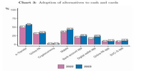 Concerning the other choices of cash and card, to transfer the money one has a chance to make the e-payment between the Canadian people. It is a way to transfer money through email or phone numbers.