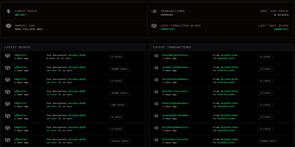 As per CantoScan block explorer, the Canto blockchain saw a blackout for almost 33 hours, however, the last transaction occurred at 2:29 am on Aug. 11, from block 10847516 just before the Canto Chain upgrade. Only two transactions were processed on the blockchain as Etherscan cannot deduct any transaction in the past 33 hours.