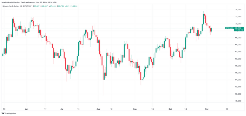 Bitcoin is trying to reach its 2022 all-time high of $69,000 as election worries affect the market on Nov. 5.