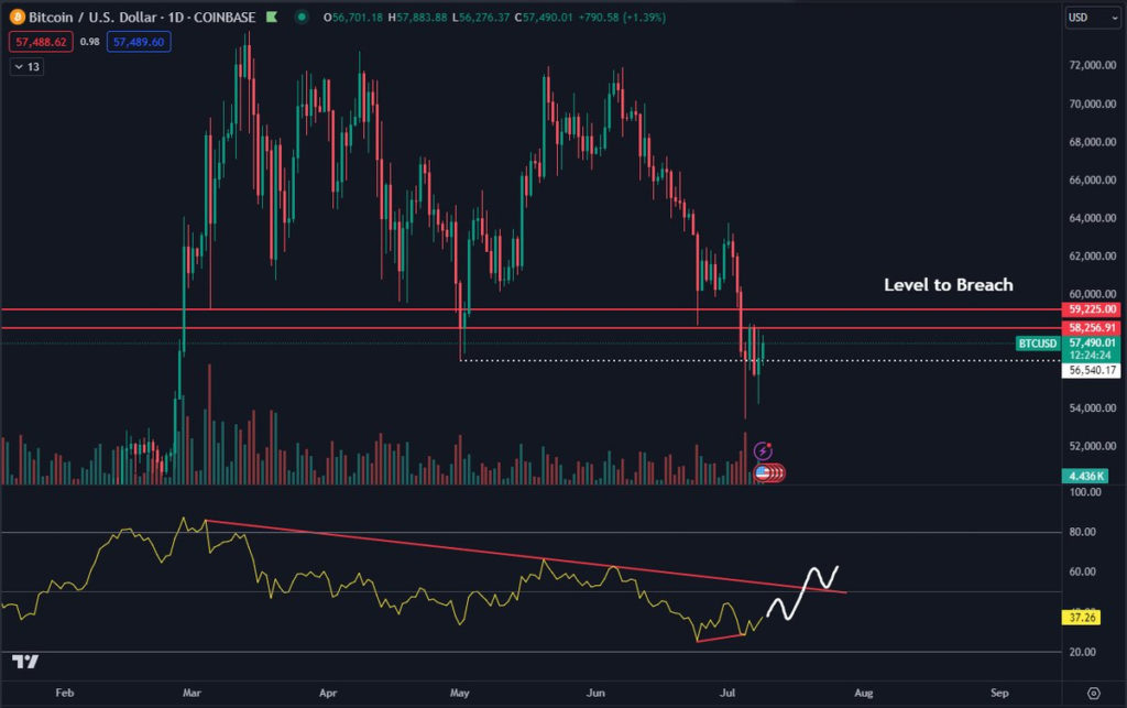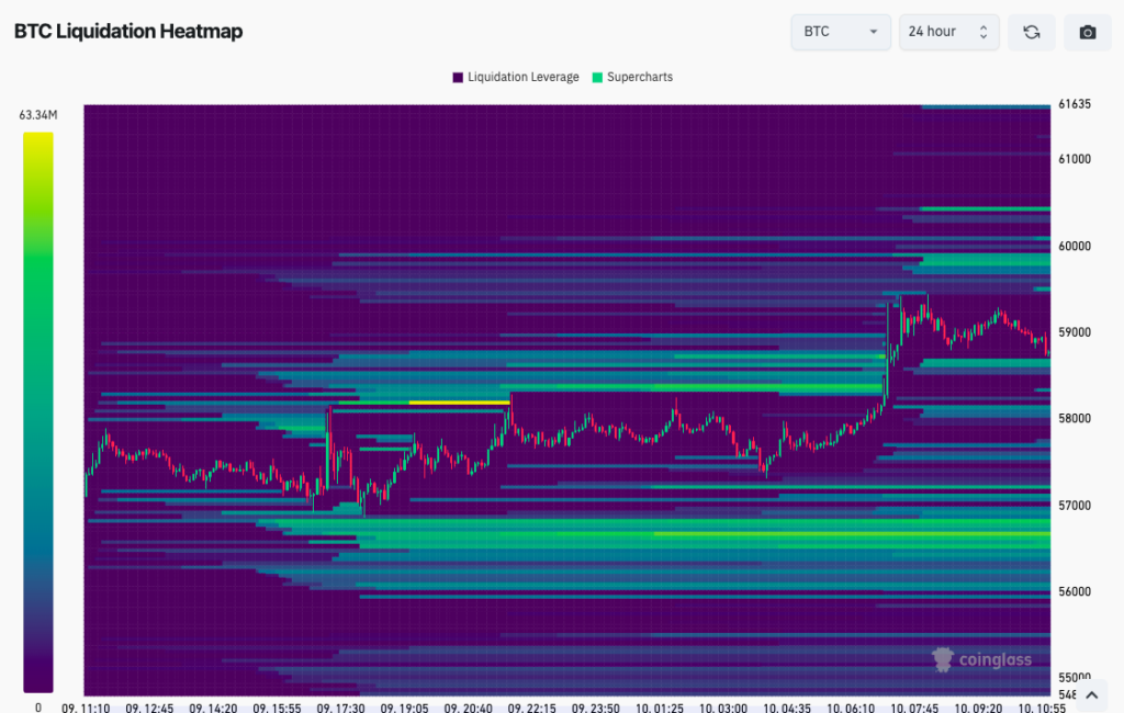 Daan Crypto Trades highlighted $59,000 as the key price level to reclaim, while others pointed to $58,400 as an important level to watch in the effort to break through the $60,000 resistance.