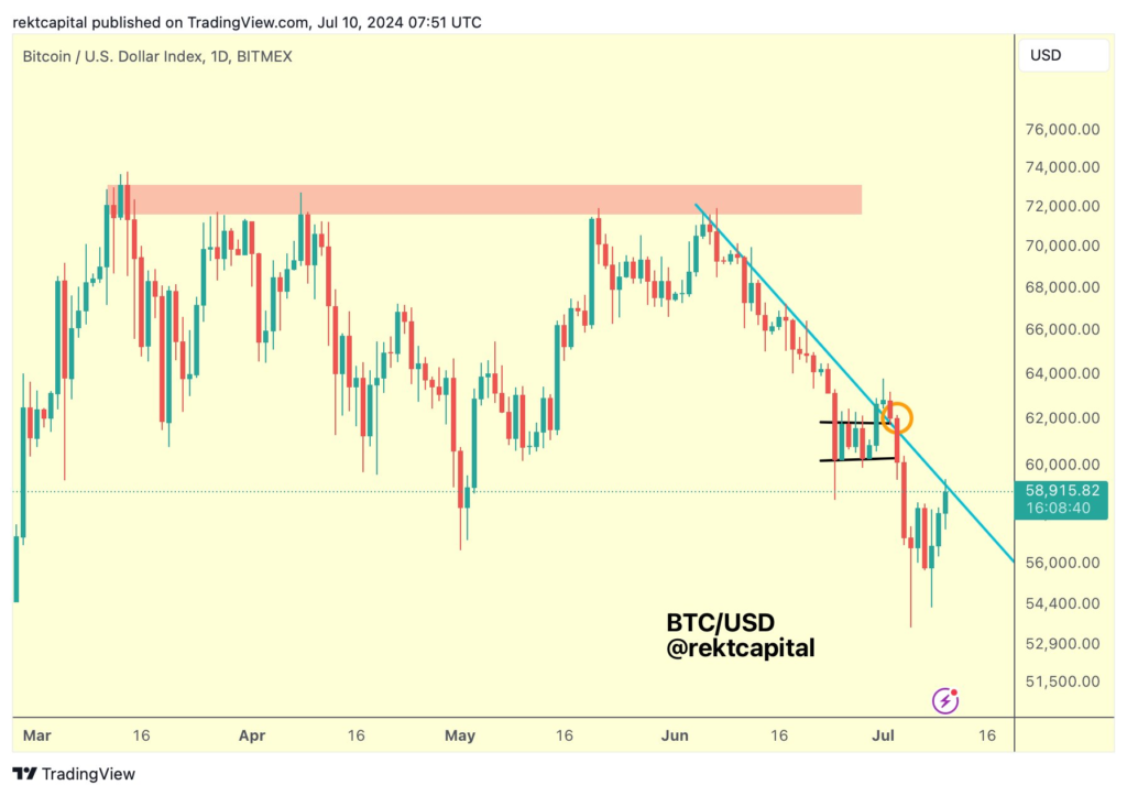 “Bitcoin is now challenging the 1.5-month Downtrend for a breakout attempt,” Rekt Capital continued.