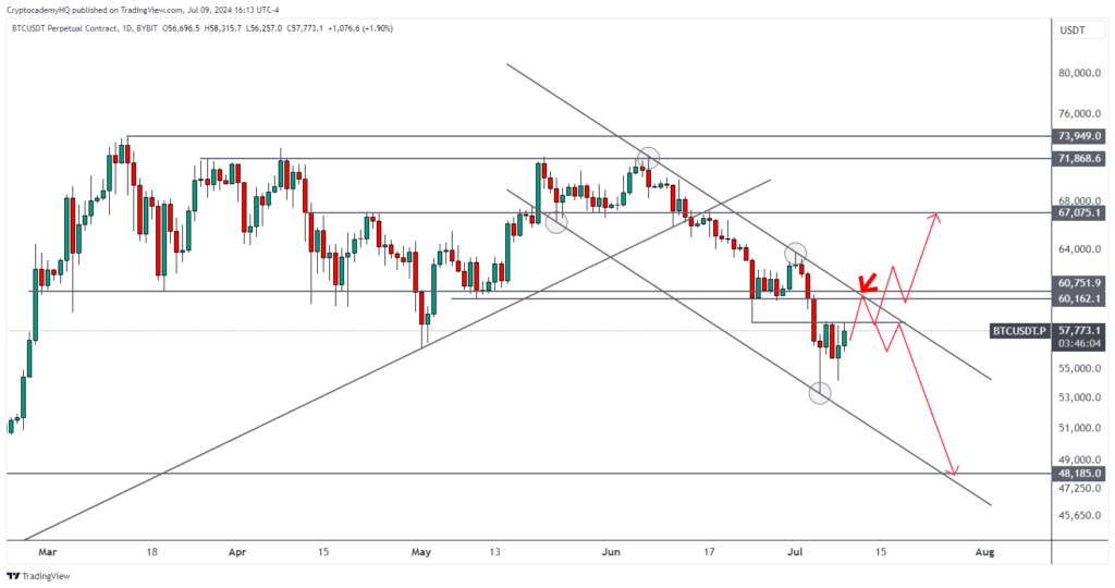 On July 10, Bitcoin (BTC) approached $60,000 as buyers tried to maintain important support levels.