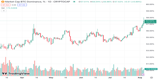 Bitcoin’s share in the crypto market reached a new record of 58% amid a sudden fall in major altcoins and the stock market crash.