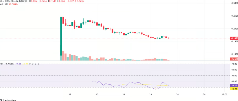 Furthermore, it has a relatively low RSI of 33.28, which is near the oversold signal; ZK gives buyers a chance to get into the market at better prices.