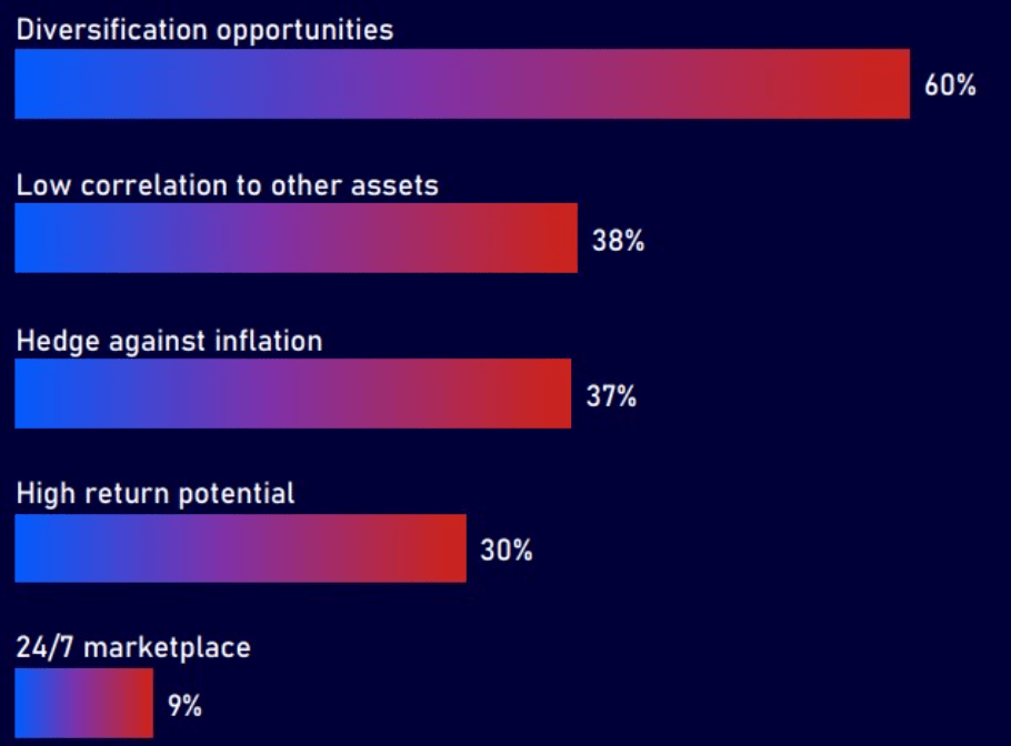 The desire for diversification was the primary reason given by 60% of the respondents as to why they want to invest in digital assets in the form of crypto assets.