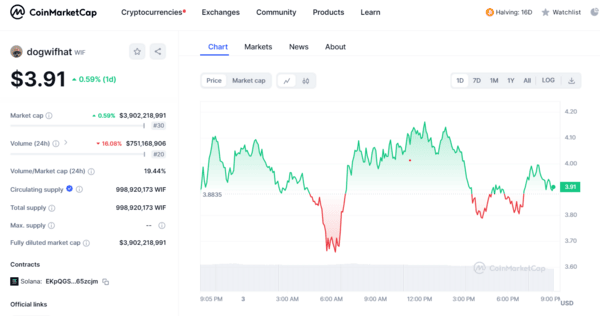 In the middle of December 2023, a cryptocurrency investor bought a newly launched meme coin, DogWifHat (WIF) for $5000. At the time of purchase, the WIF coin was trading normally, and its price was $0.004 around four months ago. In just four months of trading, this meme coin deleted all its zeros and made a new high by touching $3.9 per token.