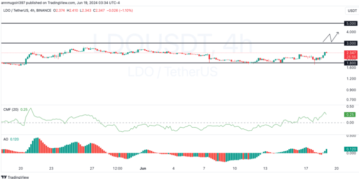 Lido DAO has had a significant upward movement and the possibility of surpassing the $3 resistance level with the aim of hitting $4 with the bullish pressure reaching $5.